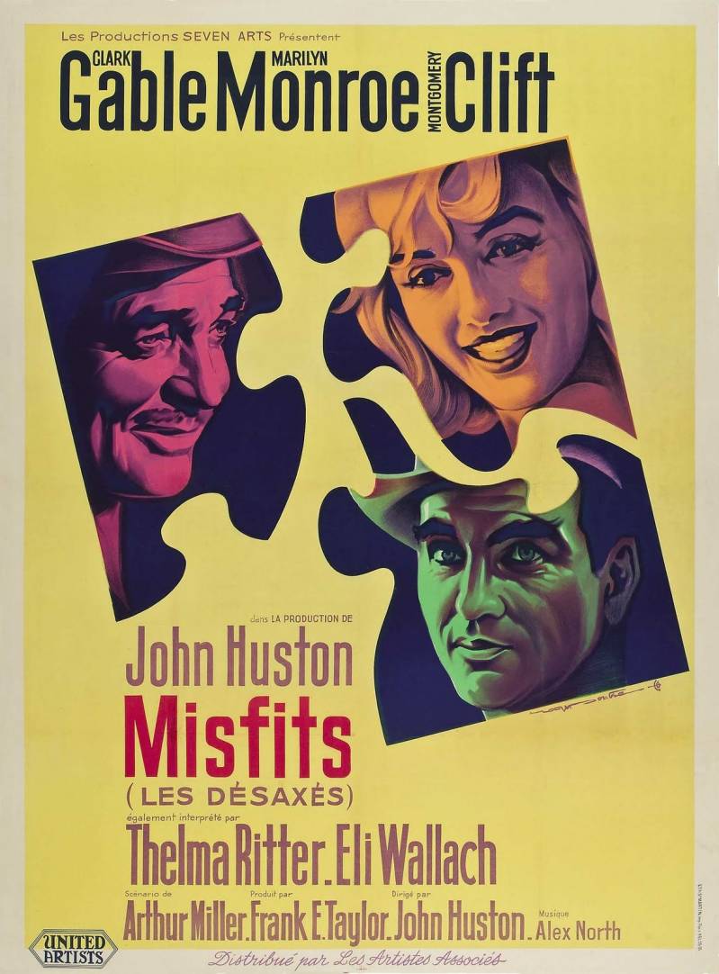 Hoewel het scenario, geschreven door toneelschrijver Arthur Miller (oa Death of a salesman) prima is en de acteurs overtuigen in hun rol, wringt er iets in deze film The Misfits uit 1962. Rosslyn Tabler (Marilyn Monroe), pas gescheiden en teleurgesteld in de liefde, raakt bevriend met een paar onaangepasten, waaronder een rol voor Montgomery Clift en Eli Wallach (The Good, the Bad and the Ugly). Rosslyn bloeit op door deze vriendschap en er ontstaat een relatie tussen haar en de oude cowboy Gay Langland (Clarke Gable) Maar gaandeweg ontdekt ze dat zijn levensfilosofie toch niet de hare is. De relatie tussen beide personages overtuigt mij niet en dat ligt niet alleen aan het leeftijdsverschil van 25 jaar tussen Gable en Monroe. Ik bleef de hele film het gevoel houden naar twee acteurs te kijken die in de verkeerde film waren beland. Gable kon met zijn doorleefde kop nog wel doorgaan voor een ruwe cowboy, maar bij Marilyn sijpelde zo nu en dan het pruilerige door wat in haar komedies erbij hoort maar in deze serieuzere rol begint te storen. Vanuit de achtergrond van de film is goed te verklaren dat er iets wringt. Arthur Miller die zijn toenmalige vrouw Marilyn haar doorbraak als serieus actrice gunde maar het huwelijk gaandeweg zag afbrokkelen, bleef maar schaven en sleutelen aan het script wat Marilyn mateloos irriteerde en haar steeds meer naar drank en pillen deed grijpen. Treurig genoeg overleed Clarke Gable een kort na het afronden van deze film aan een hartaanval, overleed Marilyn een jaar later en stierf ook Montgomery Clift enkele jaren daarna aan de gevolgen van drank en drugsverslaving. Deze scène van de film vond ik het beste te genieten, waarin Gay jacht maakt op wilde paarden om deze te verkopen aan een handelaar in diervoer en Rosslyn zich realiseert dat ze hierbij niet betrokken wil zijn.